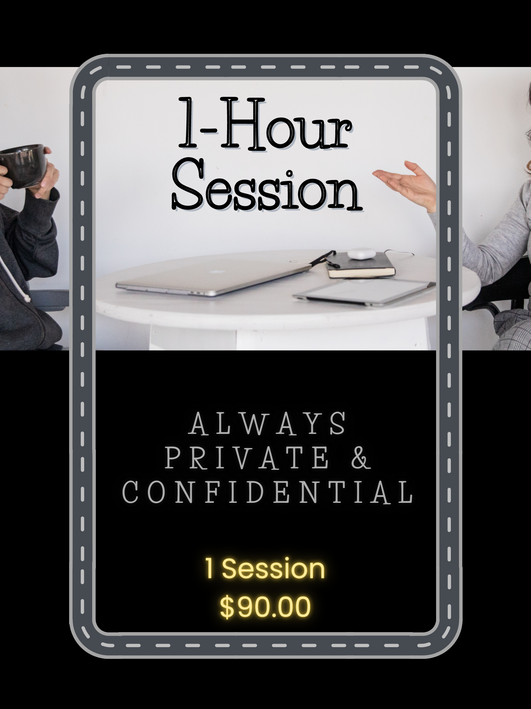 $90 includes a 1-hour session. Private, confidential.